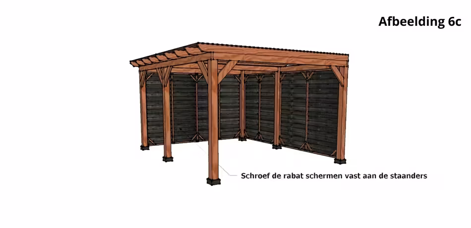 Schroef de rabatschermen vast aan de staanders.