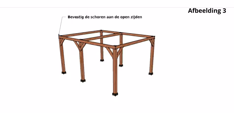 Bevestig de schoren aan de open zijde.
