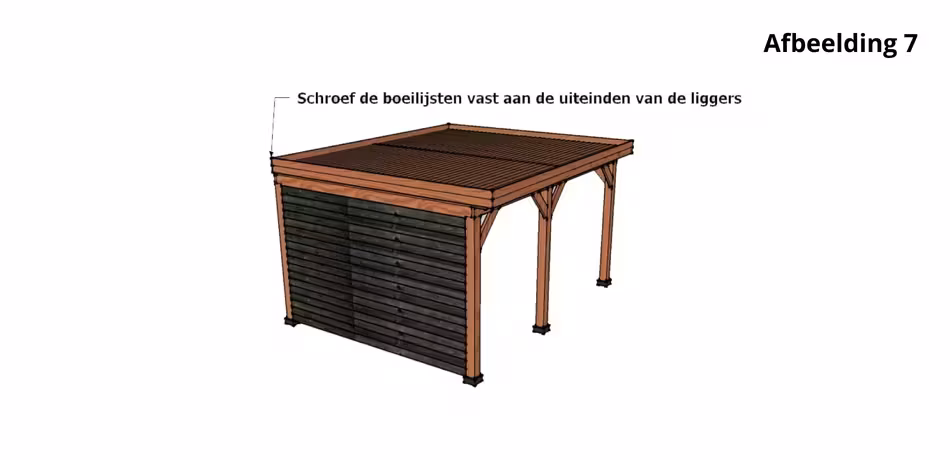 Schroef de boeilijsten vast aan de uiteinden van de liggers.