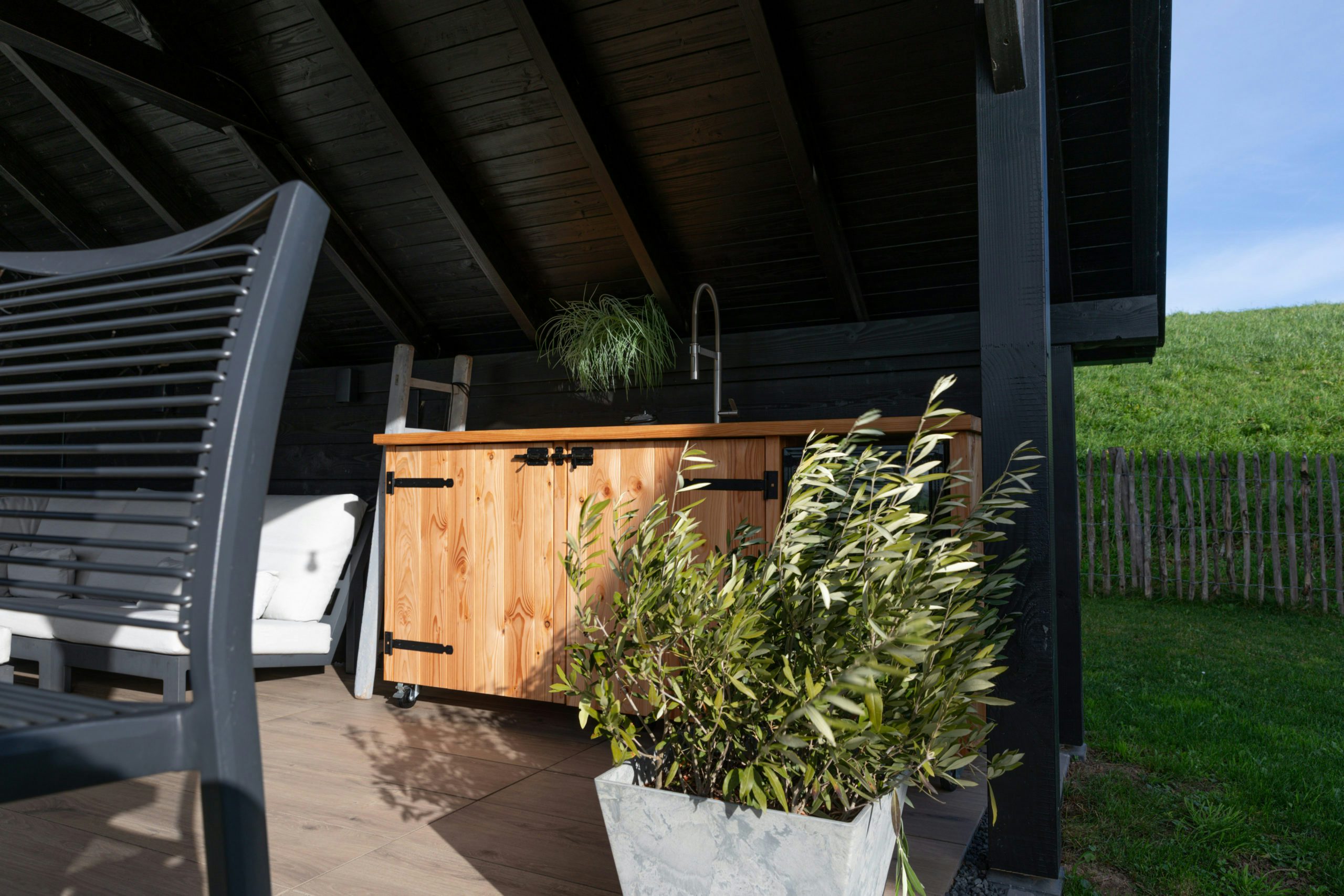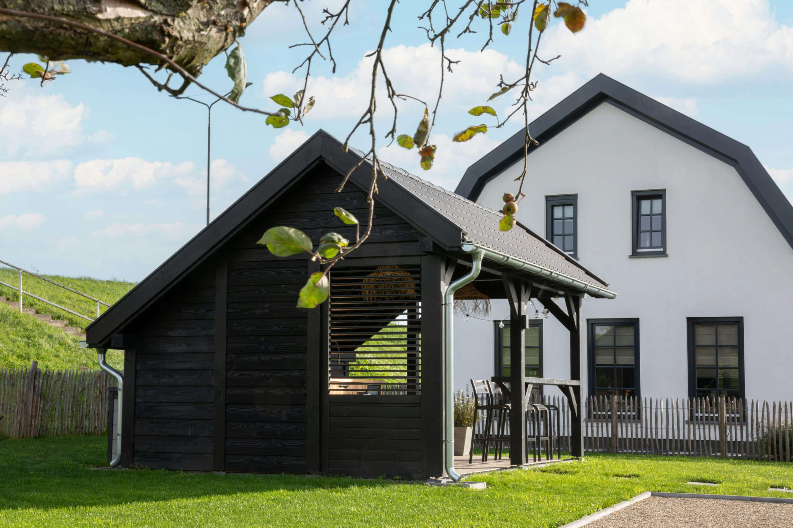 Een oasis van rust en ontspanning, dat creeër je met dit moderne buitenverblijf van Hillhout. Dit buitenverblijf heeft een zwart gespoten Douglas constructie en is uitgevoerd met wanden van sponningplanken en glazen wanden, maar voor je eigen model is dit naar wens in te vullen.